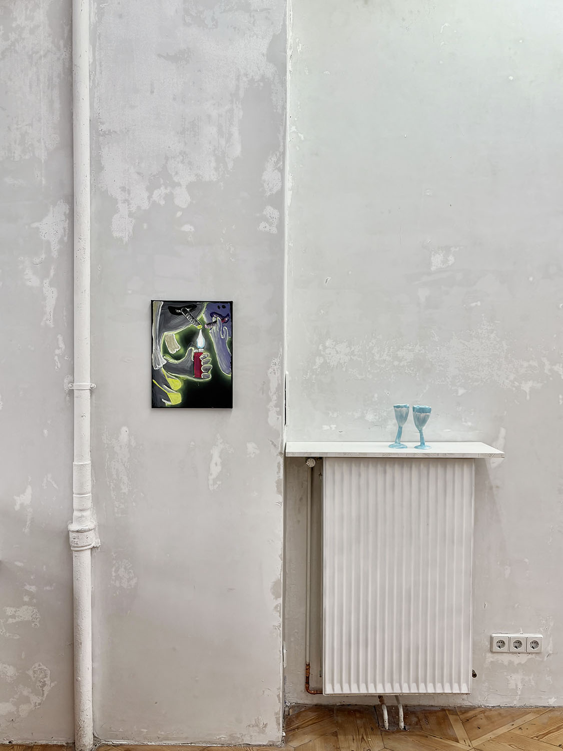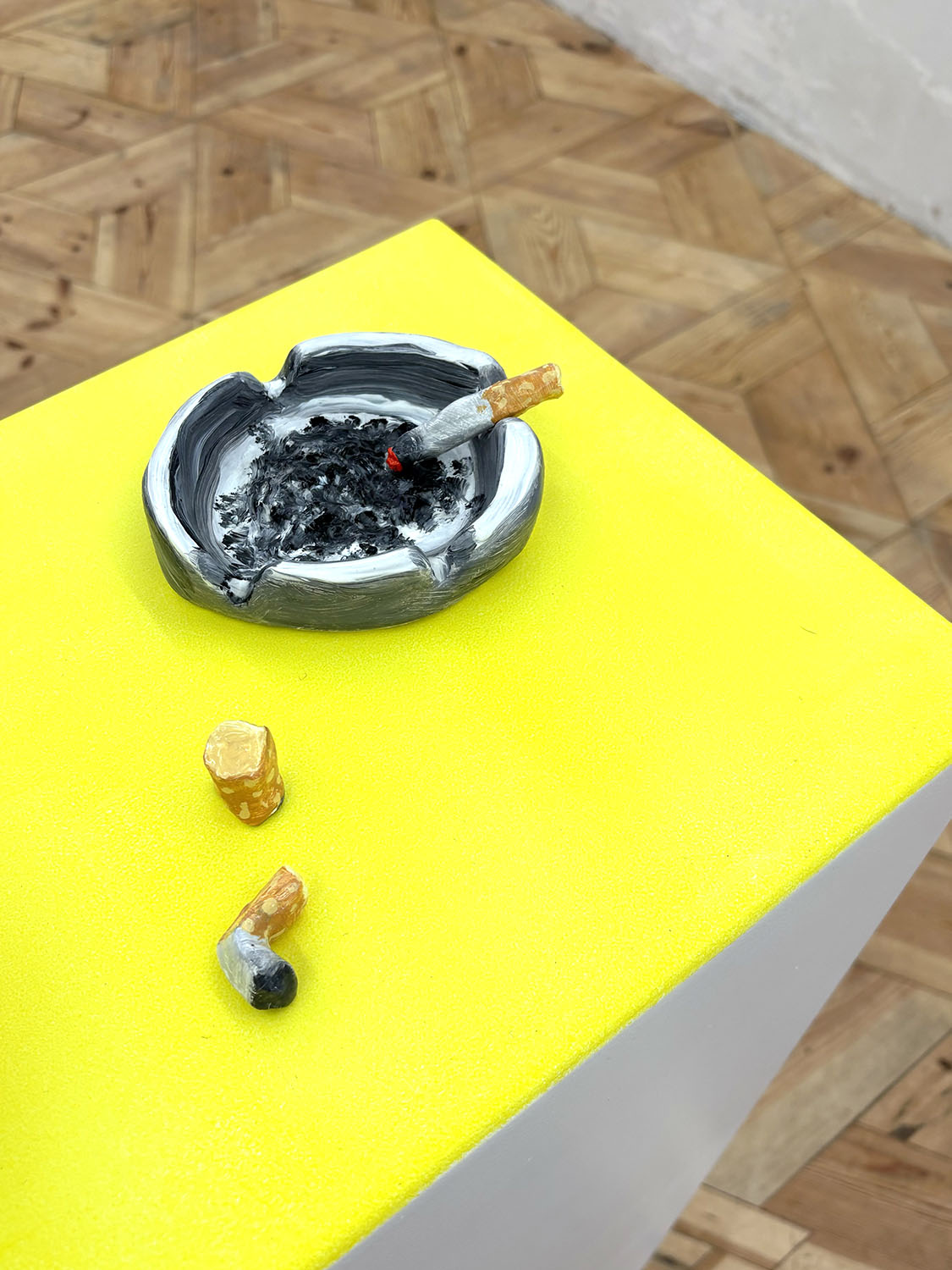 Der Rausch, der Exzess und die vollen Aschenbecher am Morgen danach stehen hier exemplarisch für das Berliner Nachtleben, für das die Stadt berühmt ist und das auch der Künstlerin nicht fremd ist. Allerdings ist angesichts der Schaffenskraft und der Produktivität Katharina Arndts auch klar, dass sie zwar mitfeiert, dabei aber auch genau observiert und den Tag im Atelier dazu zu nutzen versteht, diese Beobachtung in ein vielbeachtetes Werk zu überführen.