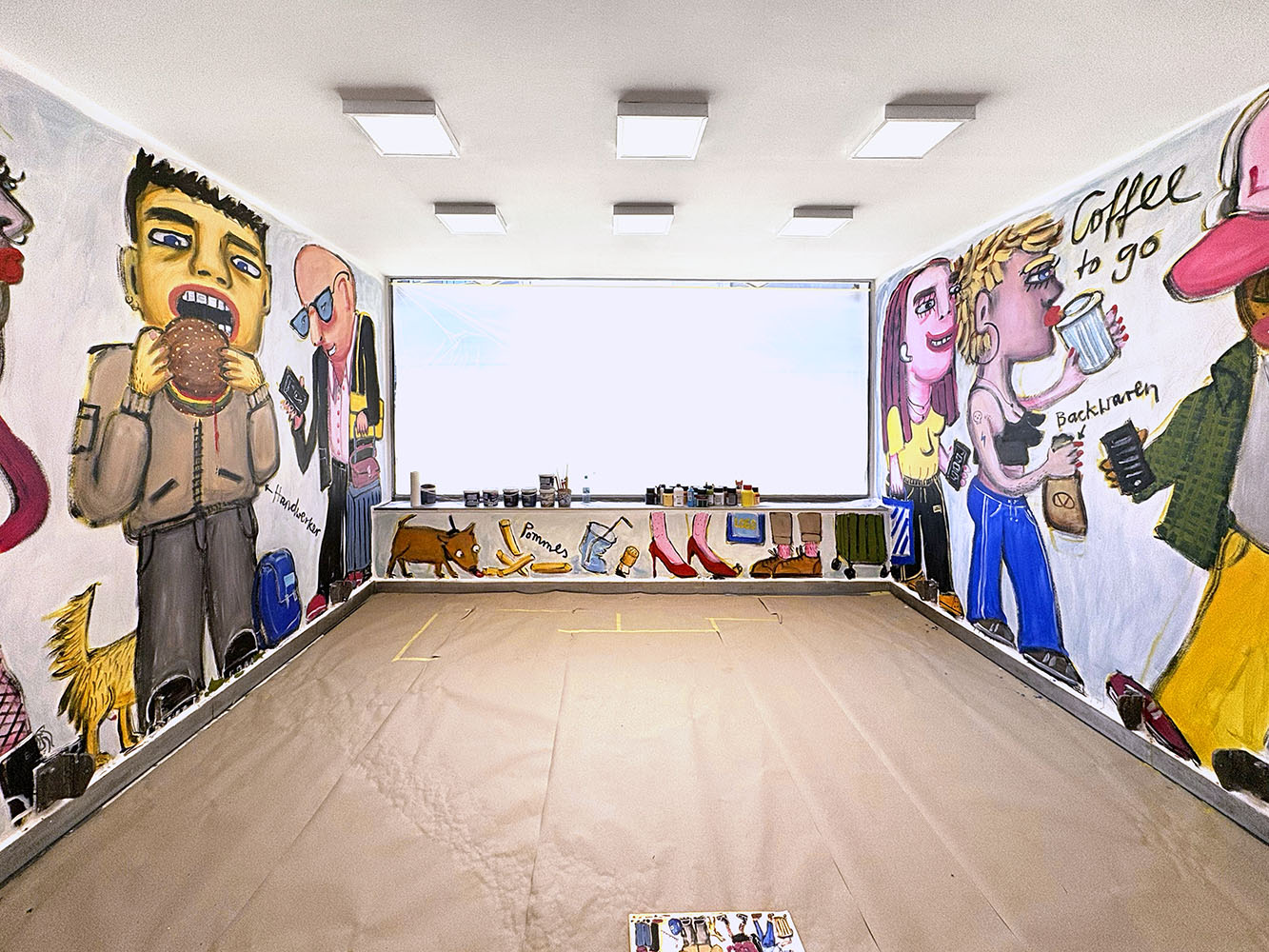 Für ihre Arbeit verwandelt Arndt den Wartebereich des Hauptbahnhofs in einen großformatigen Bildraum. Ihre raumgreifende Installation greift Szenen des Unterwegsseins auf: scheinbar gewöhnliche Momente des Alltags, die in ihrer Malerei unmittelbar, nahbar und lebendig erscheinen. Arndts Figuren folgen keinem Schönheitsideal — vielmehr feiern sie das Individuum und die Vielfalt des Lebens. In ihrer Kunst, die Anklänge an die Pop-Art aufnimmt, befragt Arndt Rollenbilder und gesellschaftliche Klischees und arbeitet dabei bewusst mit Überzeichnung und Stilisierung. Die Freude am Malprozess, die Lust an Farbe und Fläche sowie die körperliche Haptik des Malens prägen ihre Arbeiten und verwandeln die Kunststation in einen farbintensiven, begehbaren Bildraum.