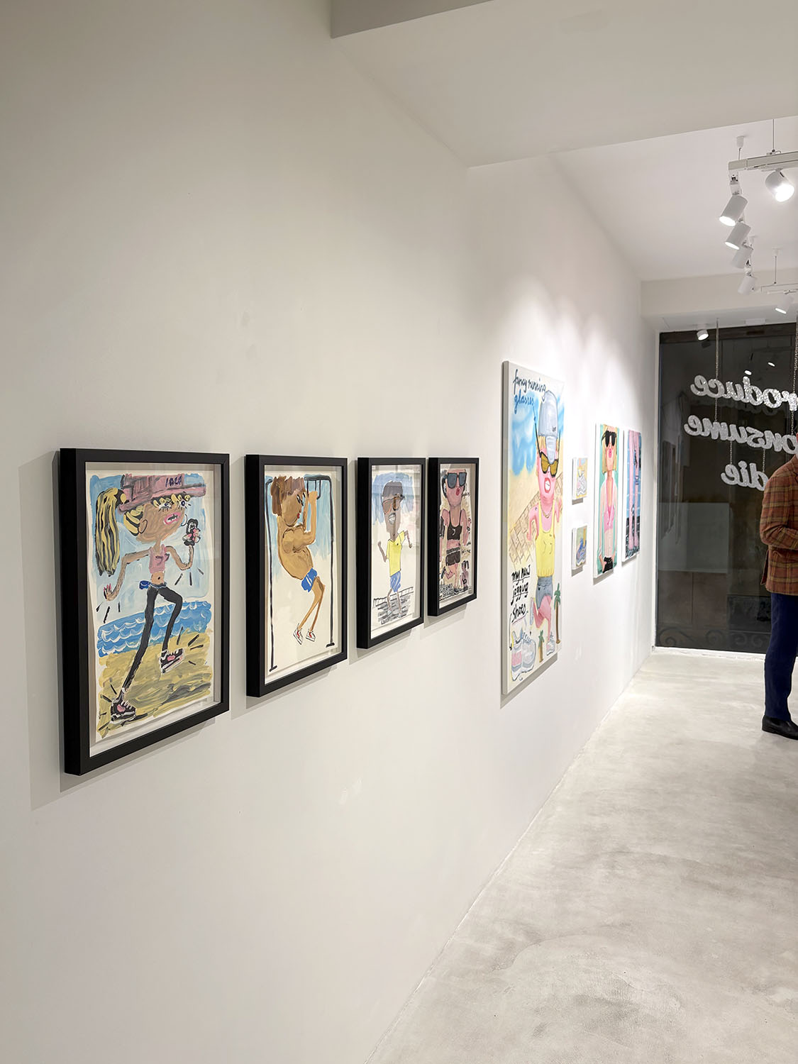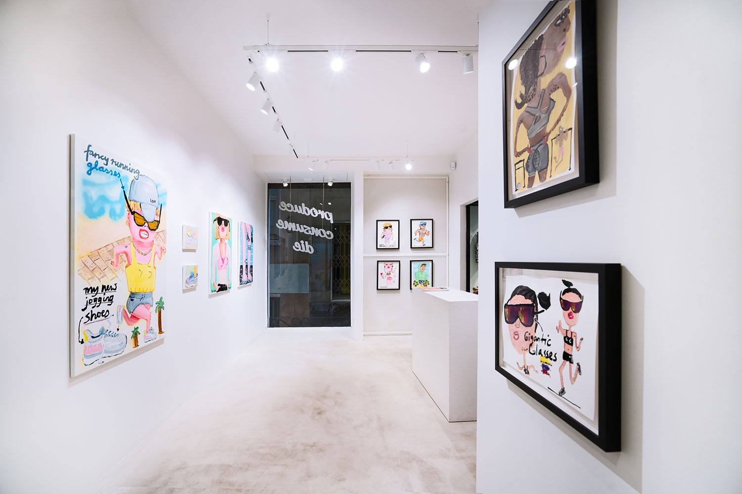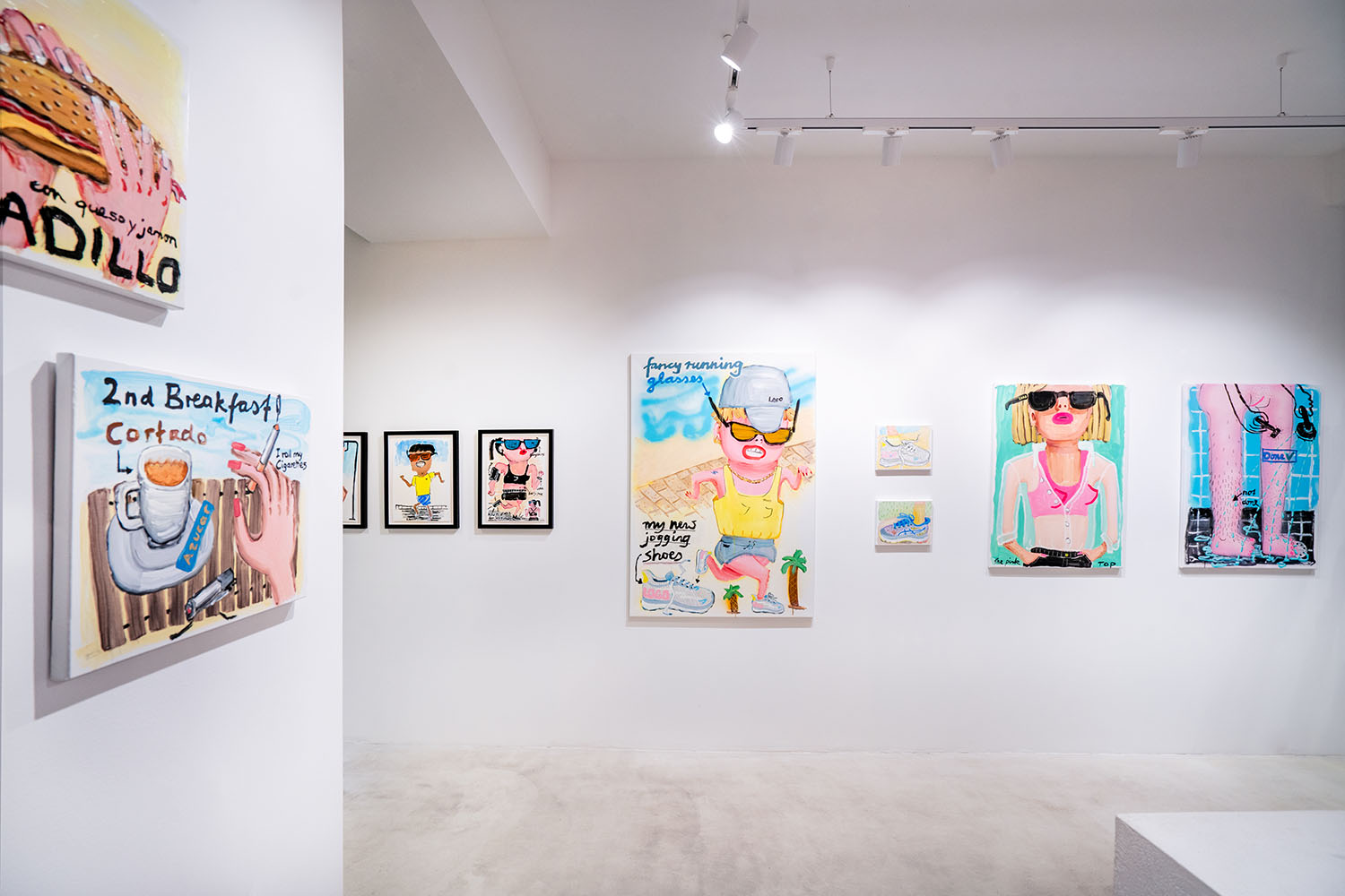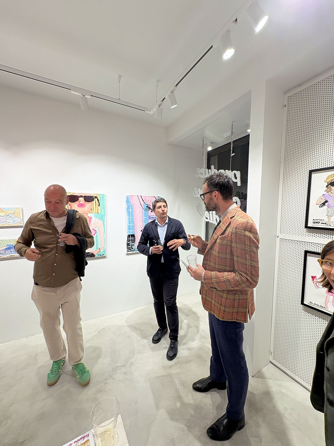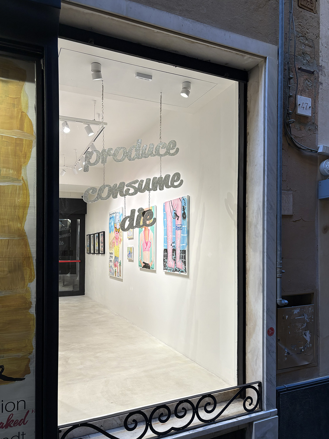 With a deliberately fast pictorial language, the artist reflects on the naivety with which people seek escape and recognition, transforming ordinary moments into a “social” spectacle, often far removed from reality.