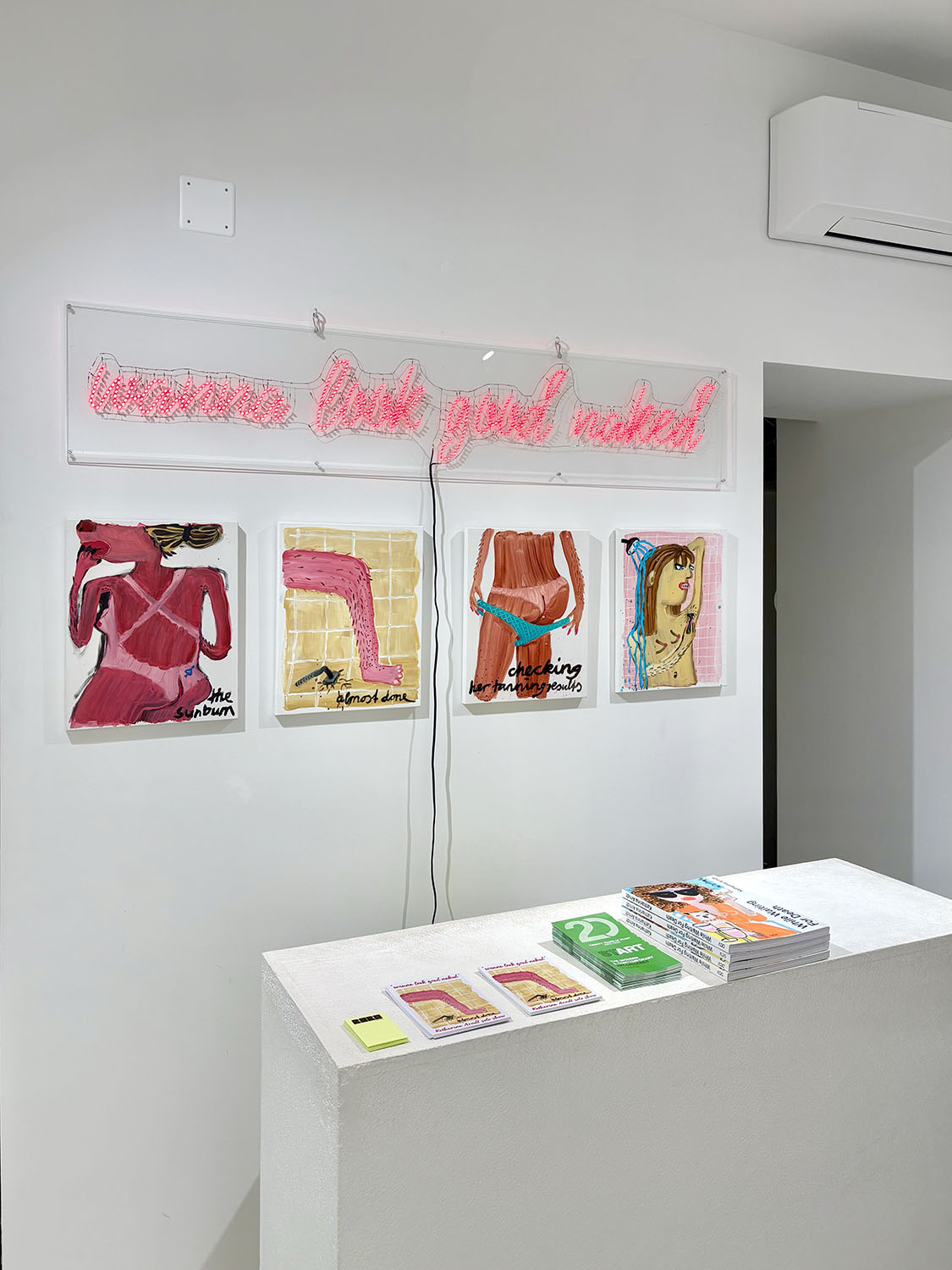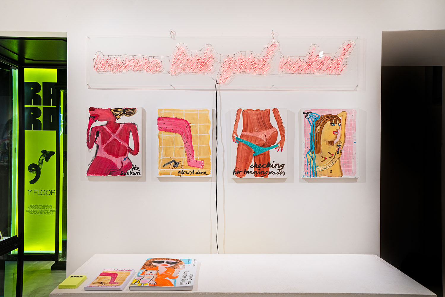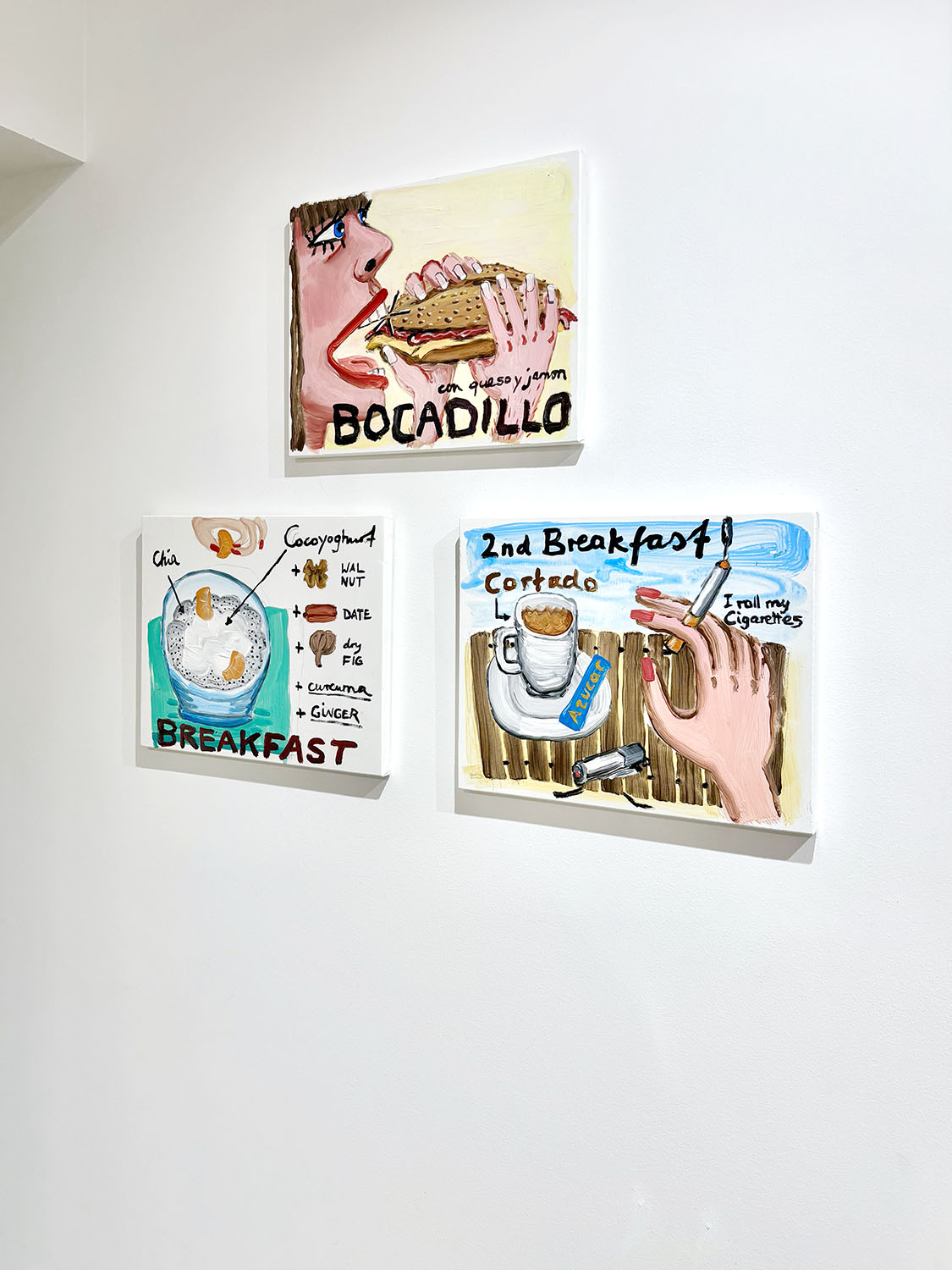 Blurring the lines between irony and social criticism, Arndt explores the consumerist and opulent aesthetics of our digital age. Her quick and lively paintings depict everyday life made up of appearances, sports, workouts, tanning and food, revealing the collective anxiety of “wanting to be perfect”.